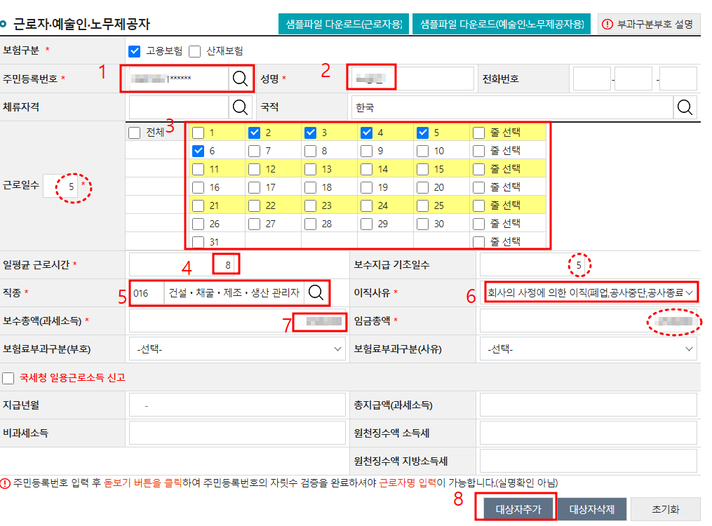 그신고를 통해서 일용직 노무자가 얼마나 근무를 하였는지 또 근무일수를 통해서 실업급여산정및