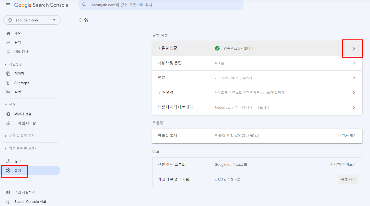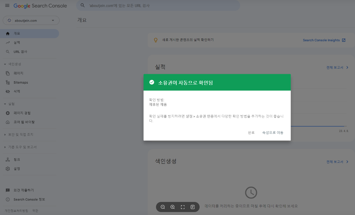 구글 서치콘솔 나의 도메인 화면으로 들어가짐