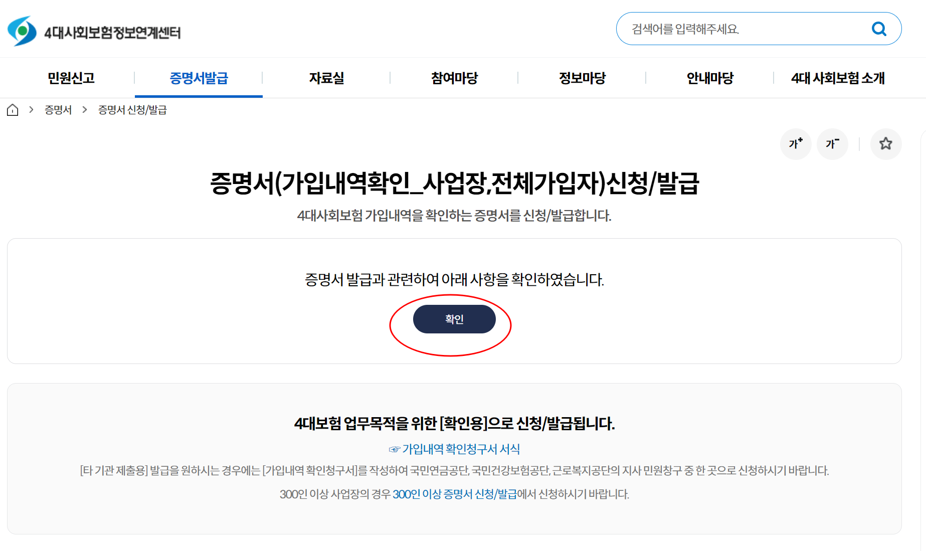 4대사회보험 정보연계센터에서 발급