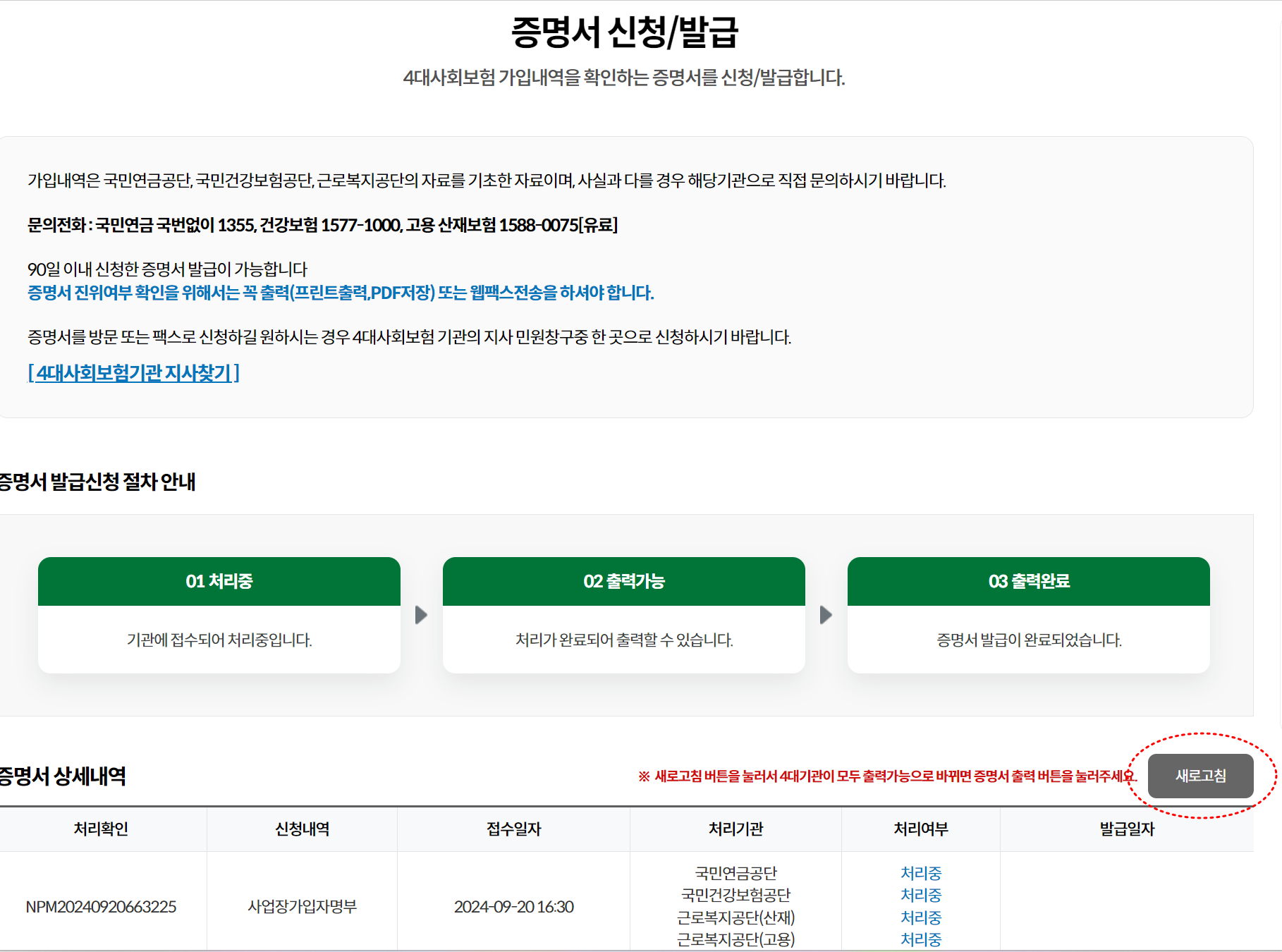 (현재시점으로 부터 발급이 가능하며 과거 시점으로 발급은 x 문의는 공단에 해볼것)