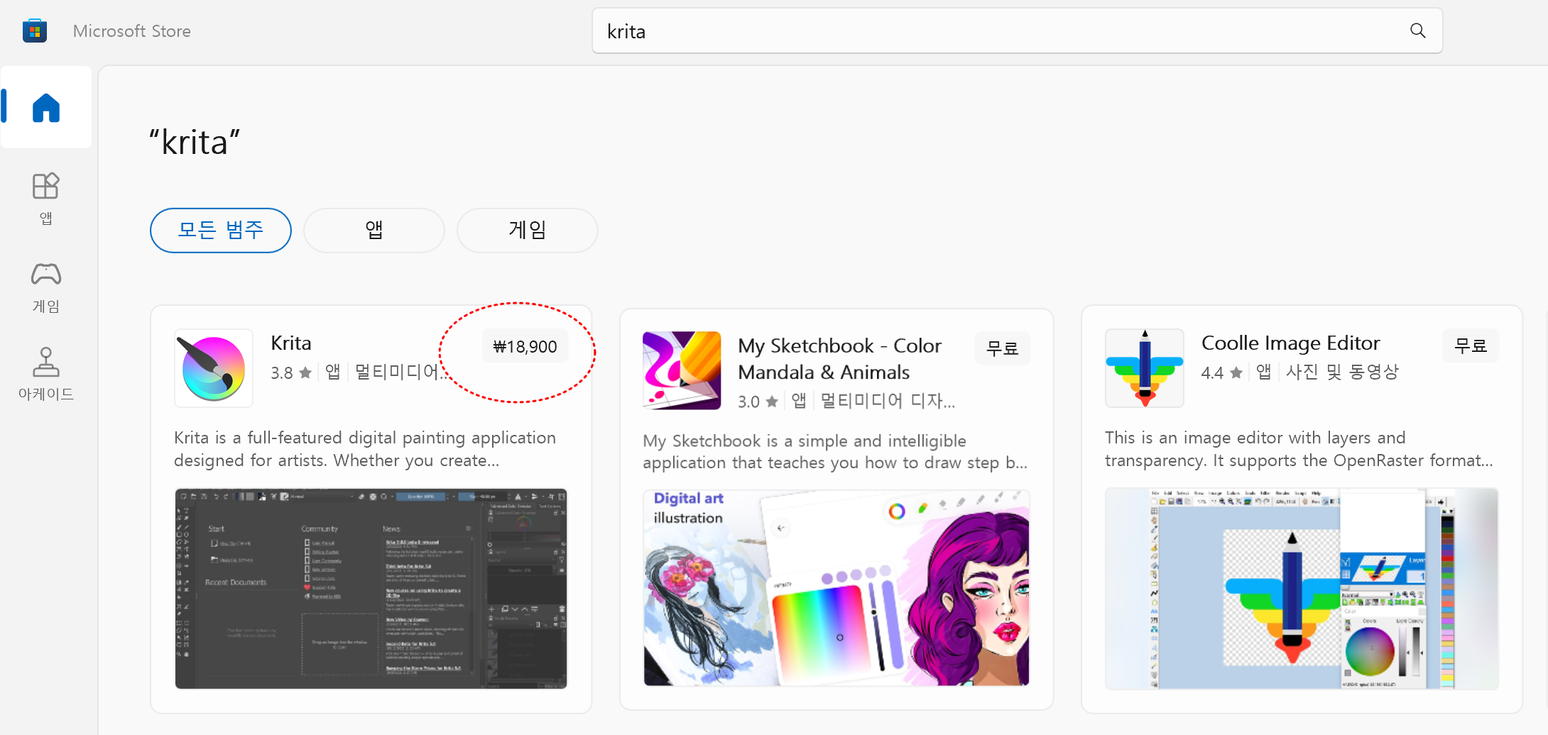 마이크로소프트스토어에서 크리타를 다운받으려하면 유료이다.