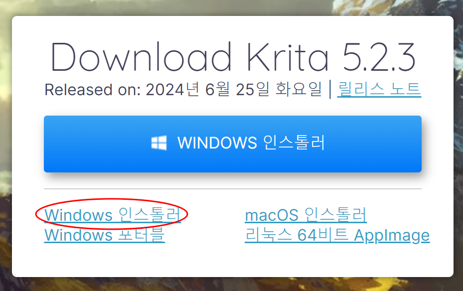 windows 인스톨러 클릭> 셋업파일저장>셋업파일저장완료후 실행> 프로그램순서에따라 실행하여 완료하기.