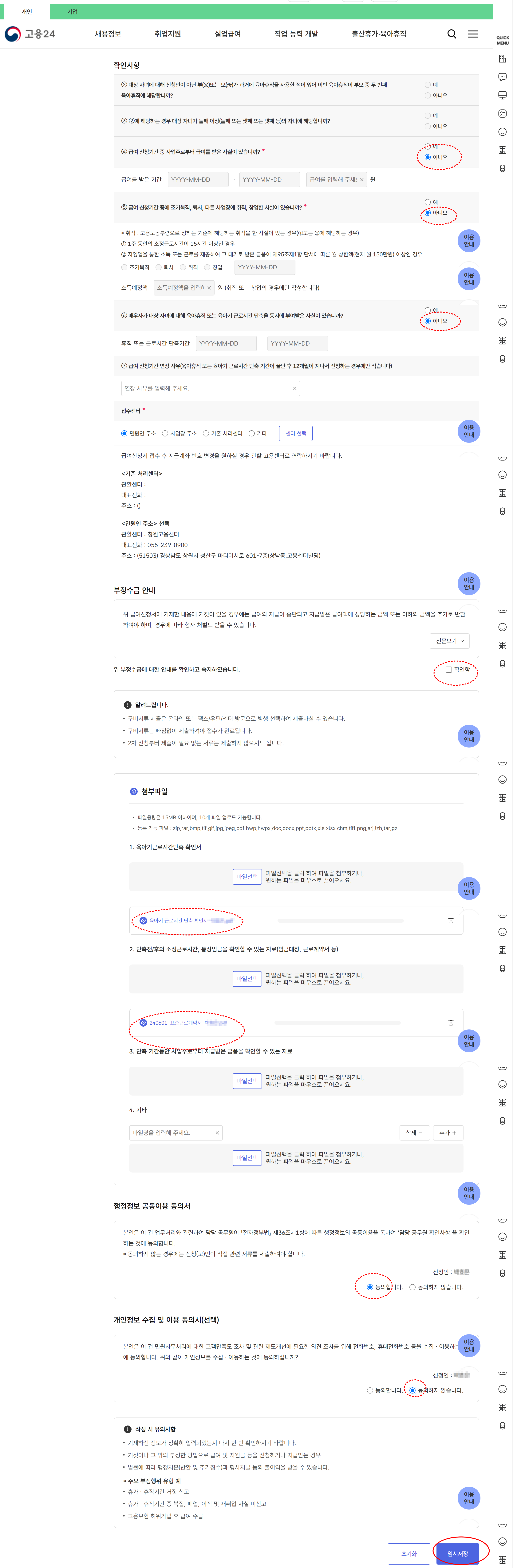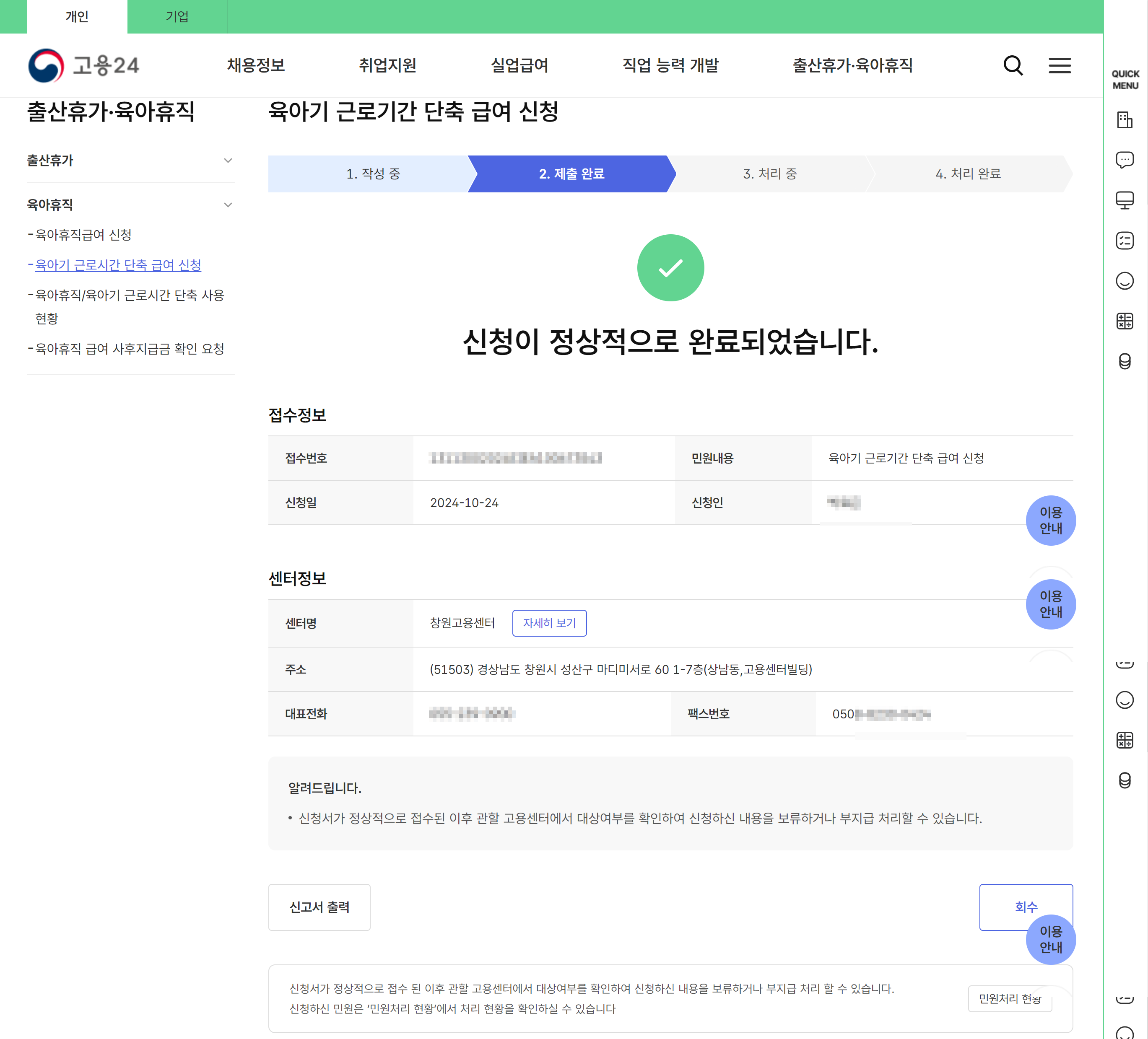 [고용24]육아단축 신청하기