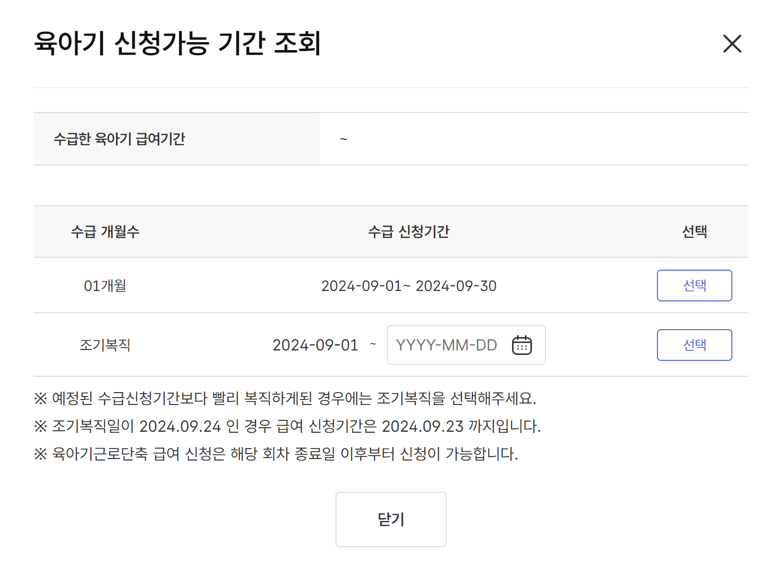 9월부터 단축근로를 사용하였으므로 9월달에 대한 1개월치가 떠있는 상태 >> 선택 클릭