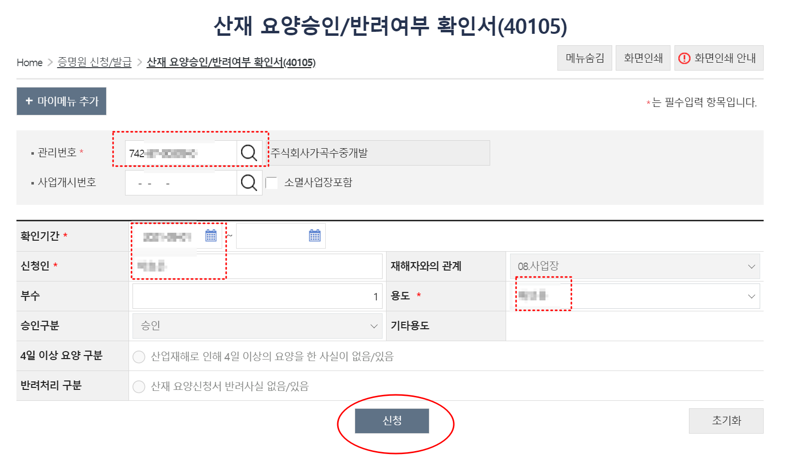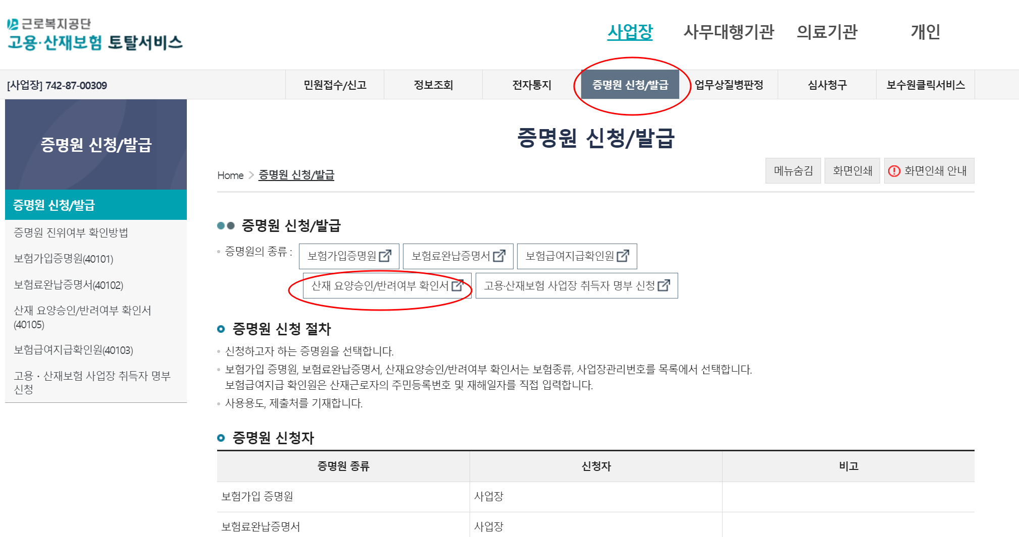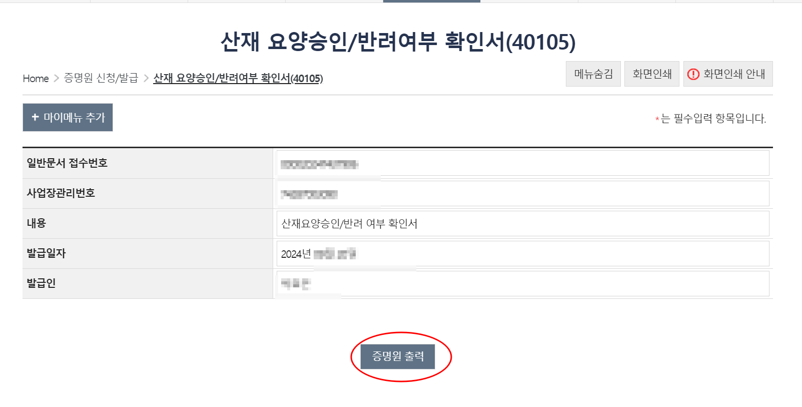 [근로복지공단]고용산재보험 토탈서비스 산재요양승인/반려여부 확인서 발급방법