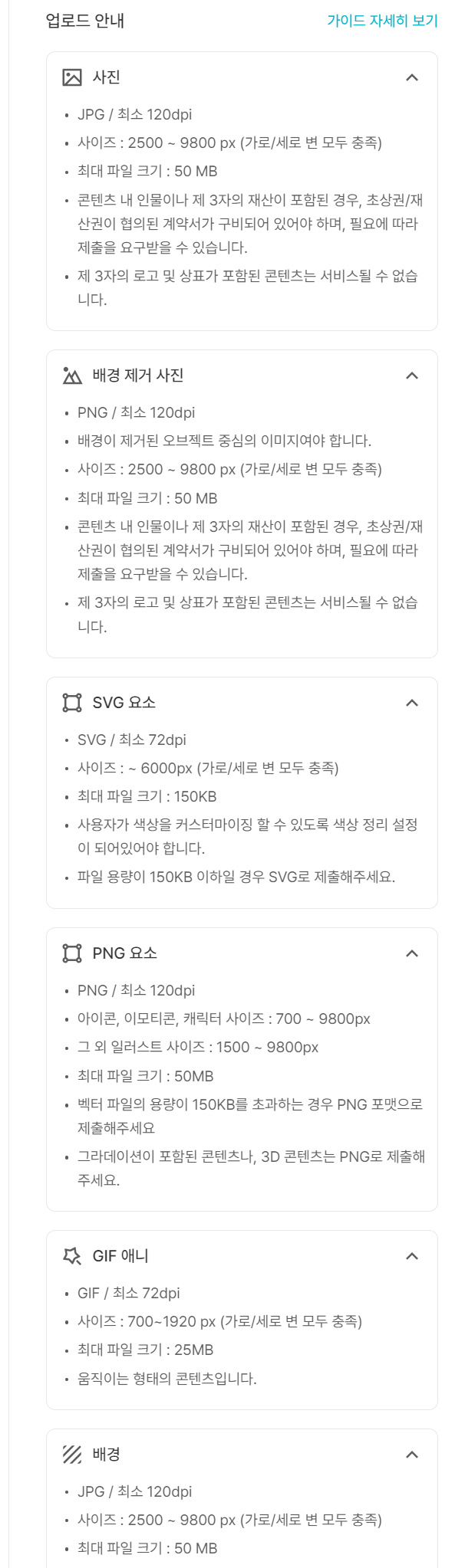 우측에 보면 업로드할 사진의 크기 및 사양이 나와있으니 참고하여 업로드하자