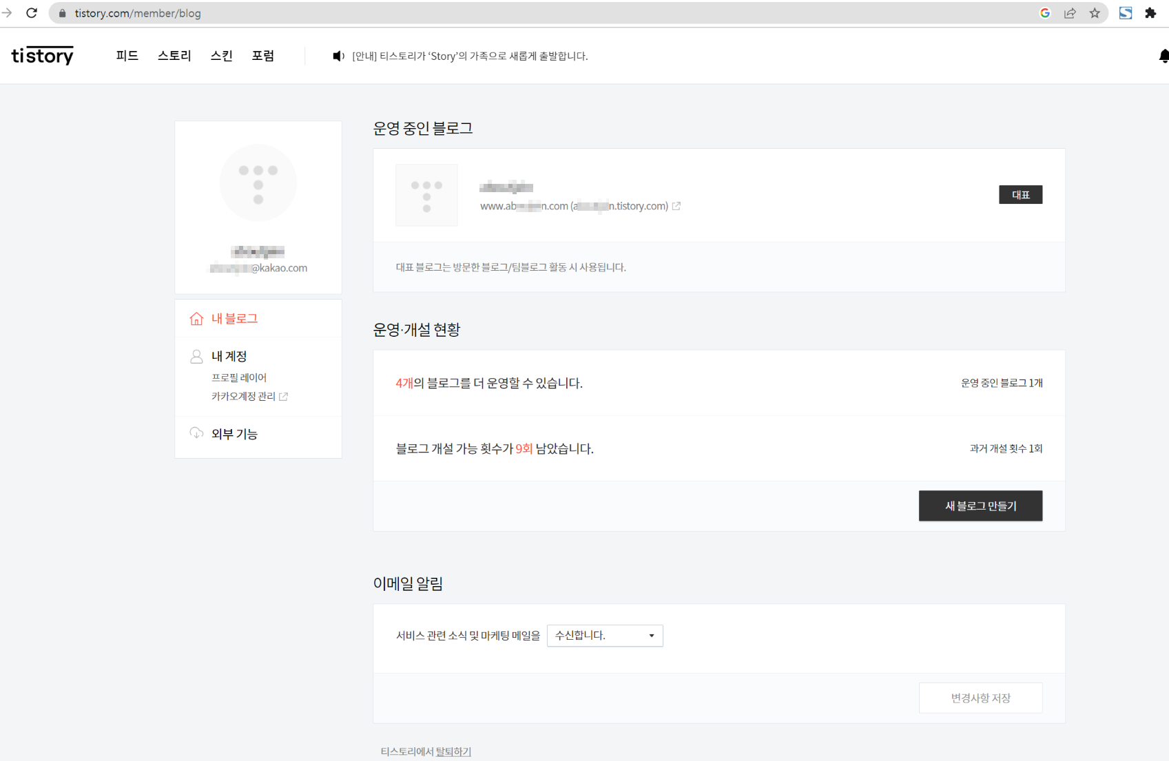 즉 티스토리는 5개의 블로그가입이 가능하고,