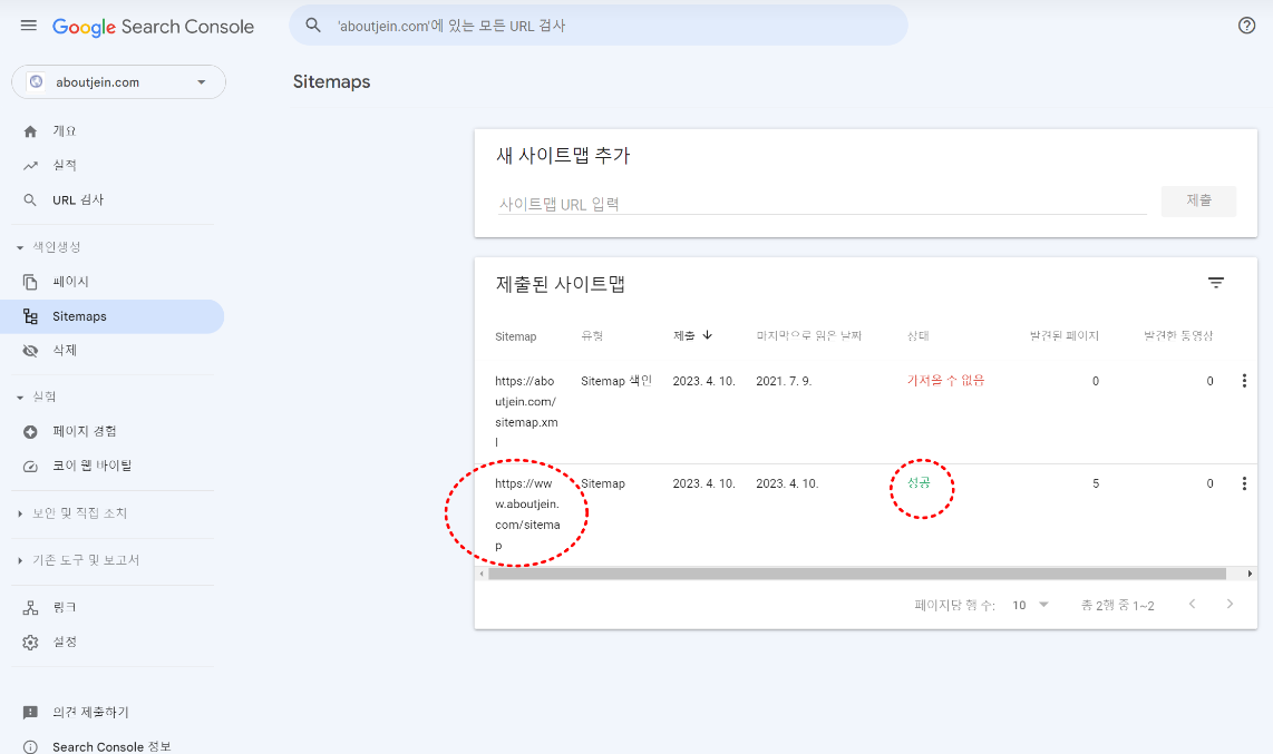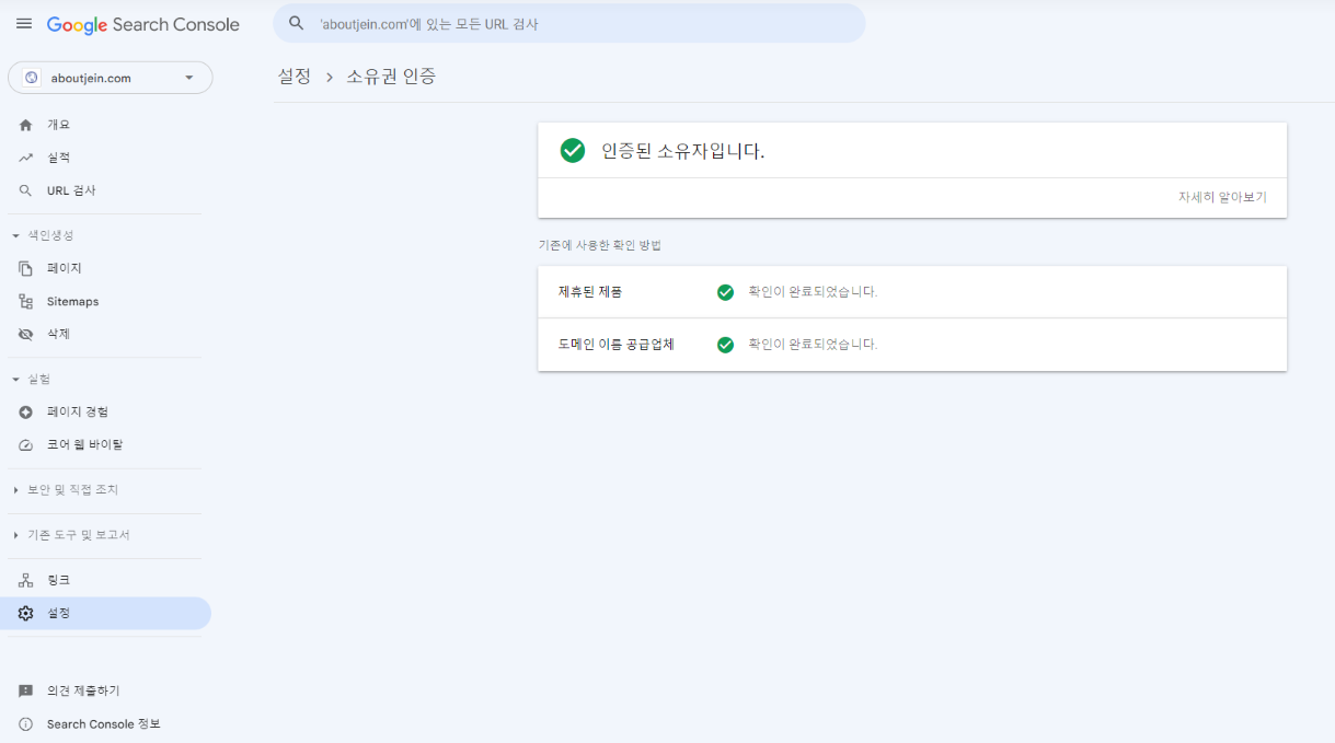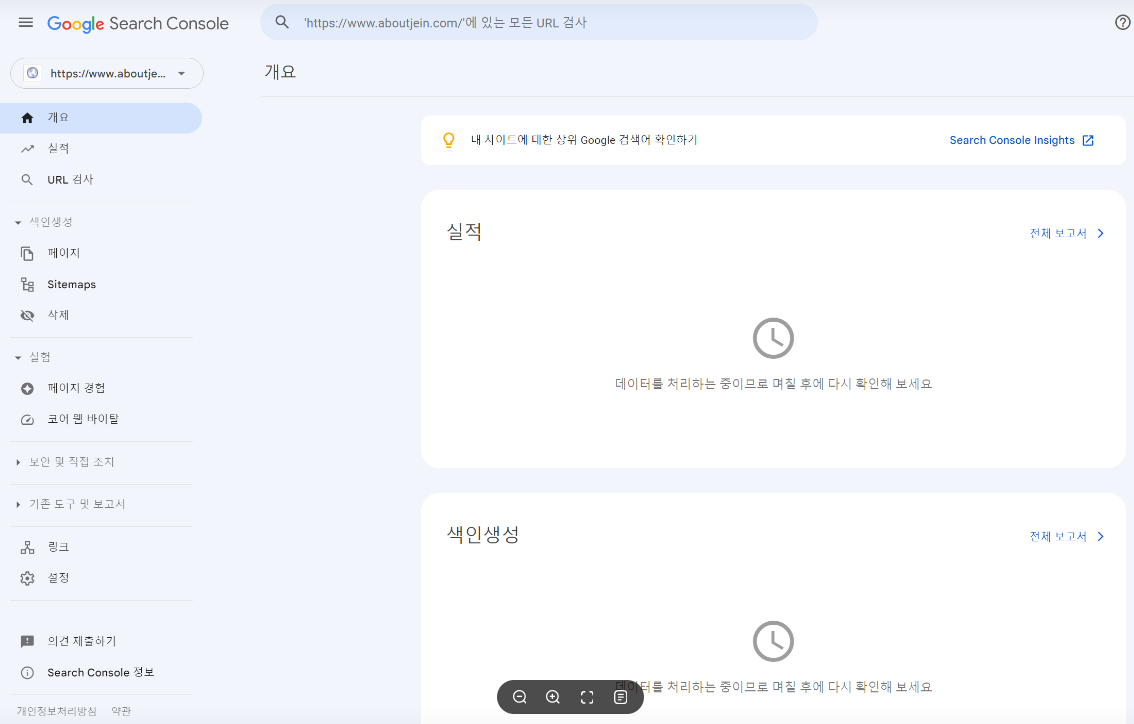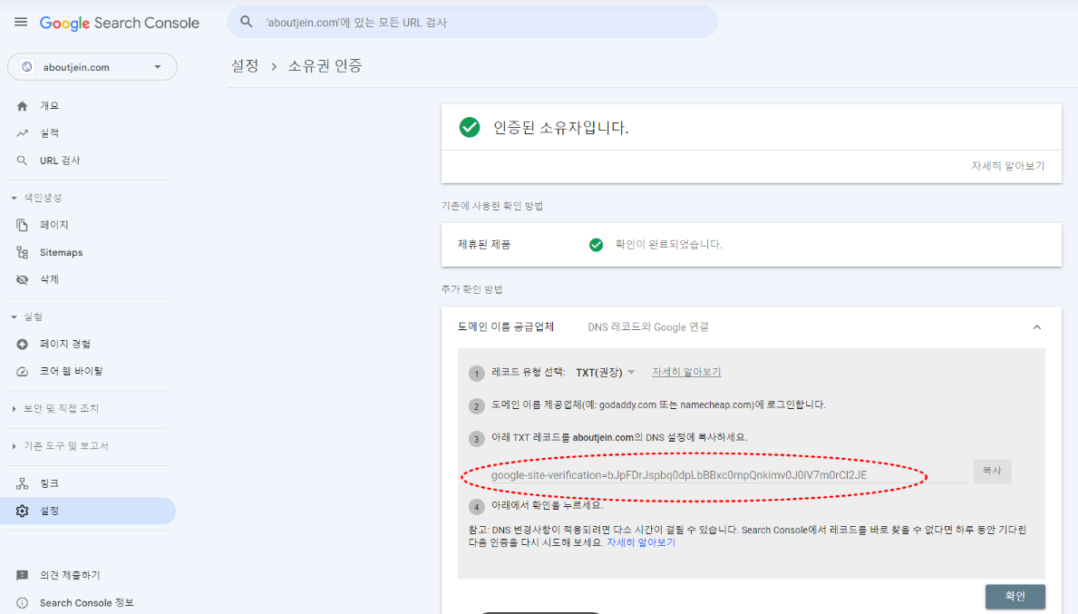 구글 서치콘솔 나의 도메인 화면으로 들어가짐