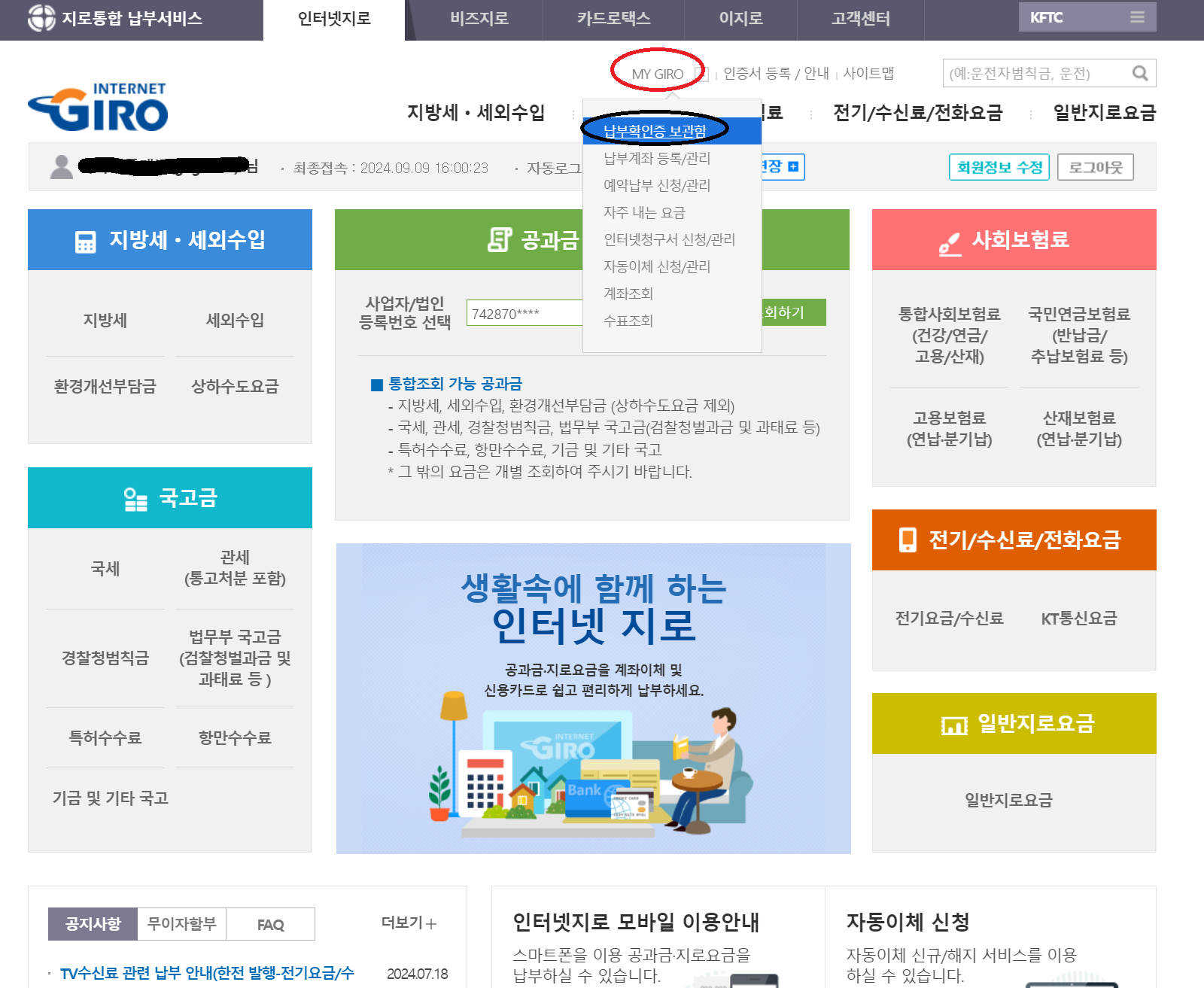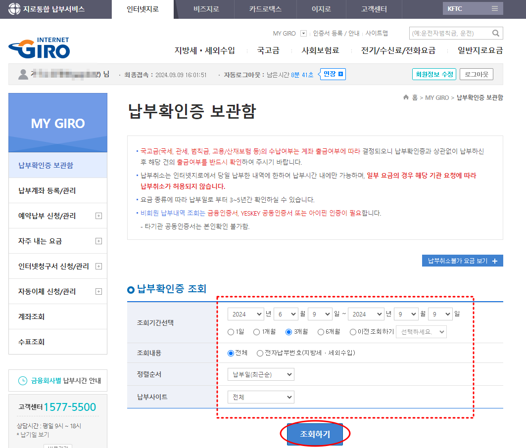 [인터넷지로] 인터넷지로 납부영수증 확인방법
