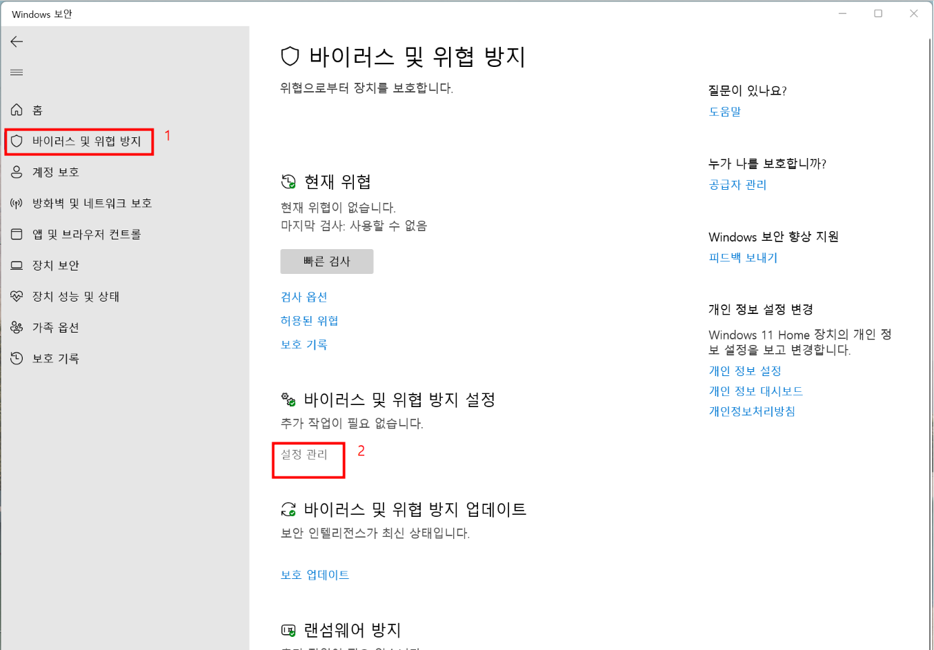 2. 윈도우11 보안센터에서 디펜더 끄는 방법