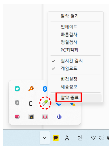 인터넷네트워크도 끊고 백신 프로그램도 끄고