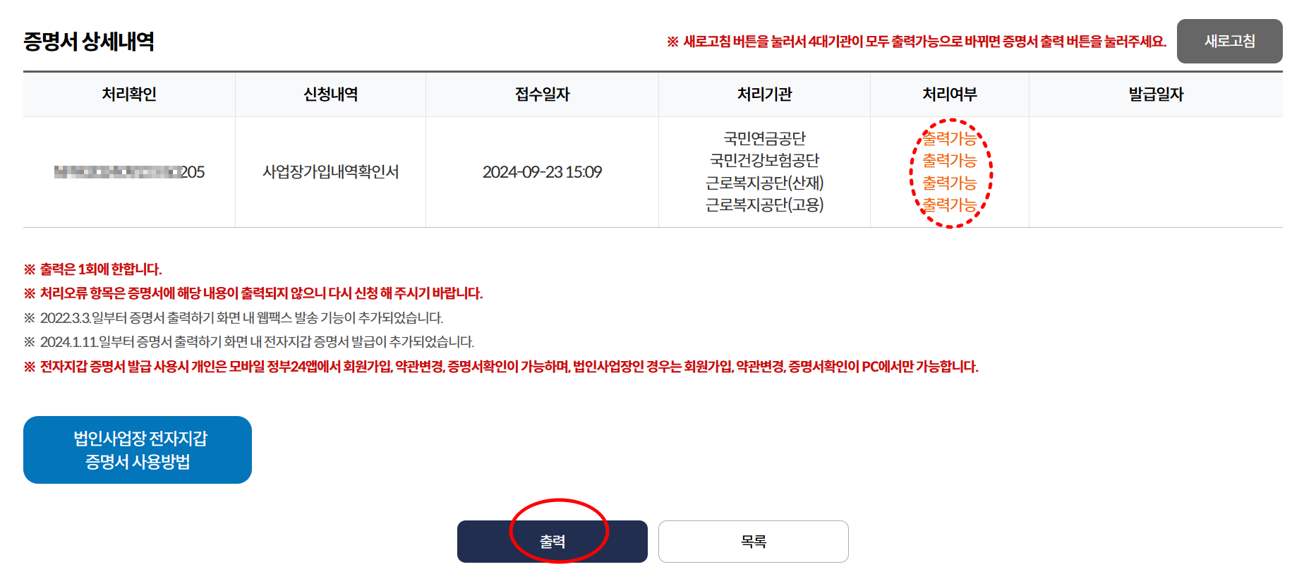 [4대사회보험정보연계센터] 4대보험 사업장 가입내역 확인서 발급방법